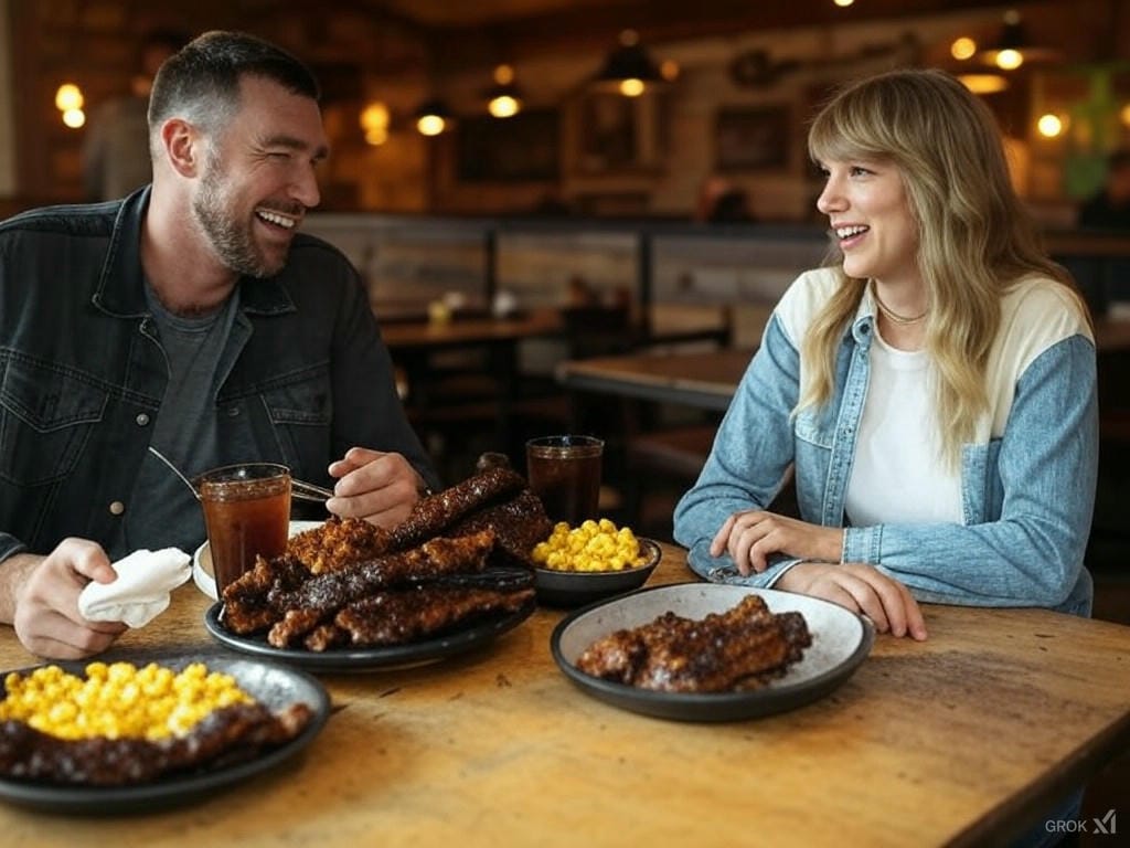 Prompt: create an image of Taylor Swift and Travis Kelce on a date eating Kansas City BBQGet starting with Generative AI