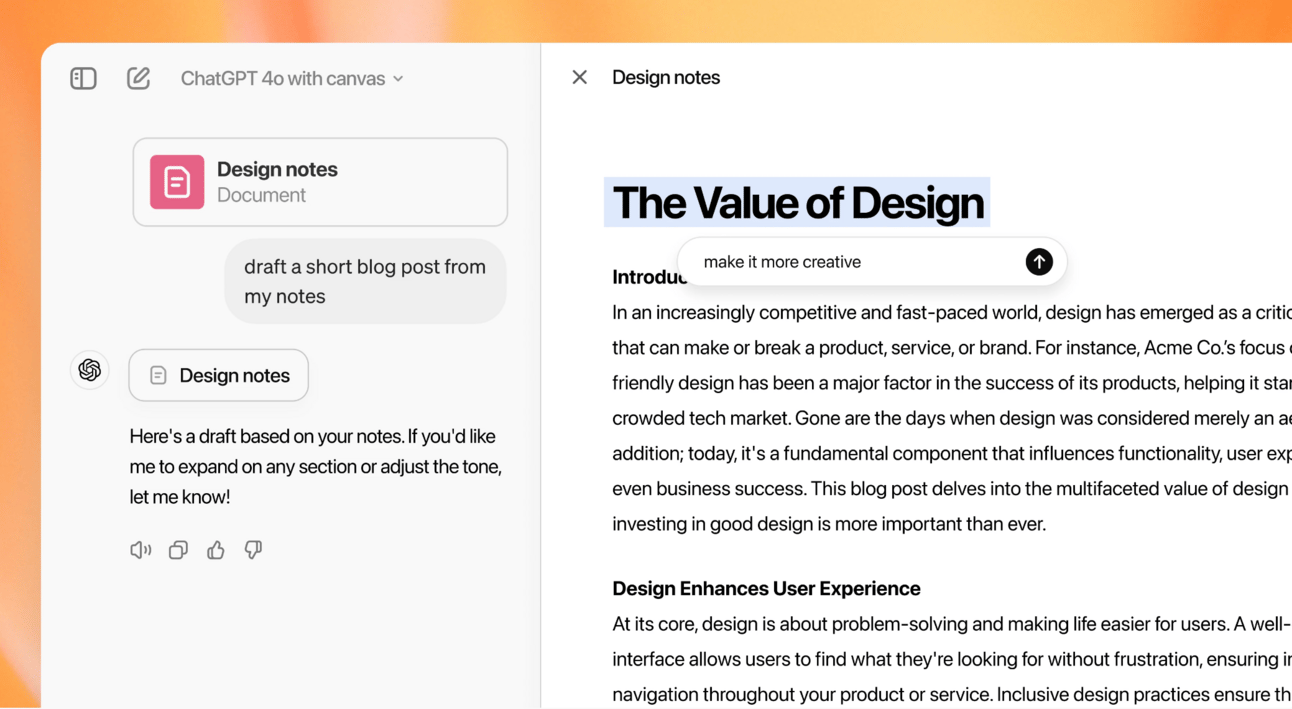 ChatGPT launched its new tool Canvas. Canvas is a new interface for working with ChatGPT on writing and coding projects that go beyond simple chat. Canvas opens in a separate window, allowing users and ChatGPT to collaborate on a project. You can make changes directly in the content or using the normal ChatGPT interface.