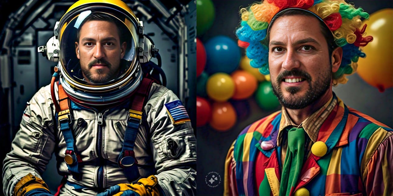 Follow the instructions, and then ask it to imagine you in different scenarios. Below is Professor Snider as an astronaut and as a clown.