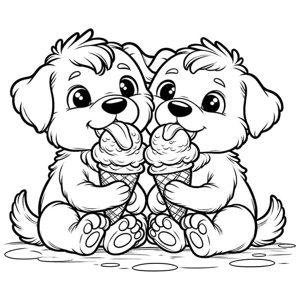 Prompt: create a delightful coloring page for kids, featuring two dogs eating ice cream. The scene is designed with clear outlines and broad spaces, making it perfect for young artists to color. Generative AI tip of the week: Consistent characters
