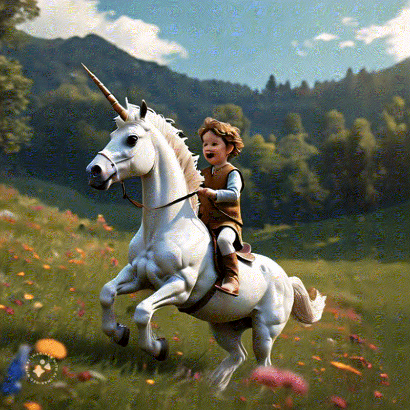 Prompt: imagine a boy riding a unicorn photoBut wait, there’s more… The animate button will turn all four of your results into animated GIFs like this one (it actually dowloaded as an MP4 and I converted it to a GIF):