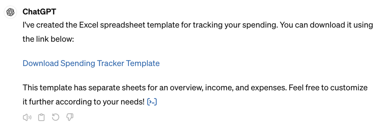 Did you know that ChatGPT can create a Microsoft Excel document for you? You will need to tell it what you want on the document and then to create the document. I asked it to create a document to track spending.