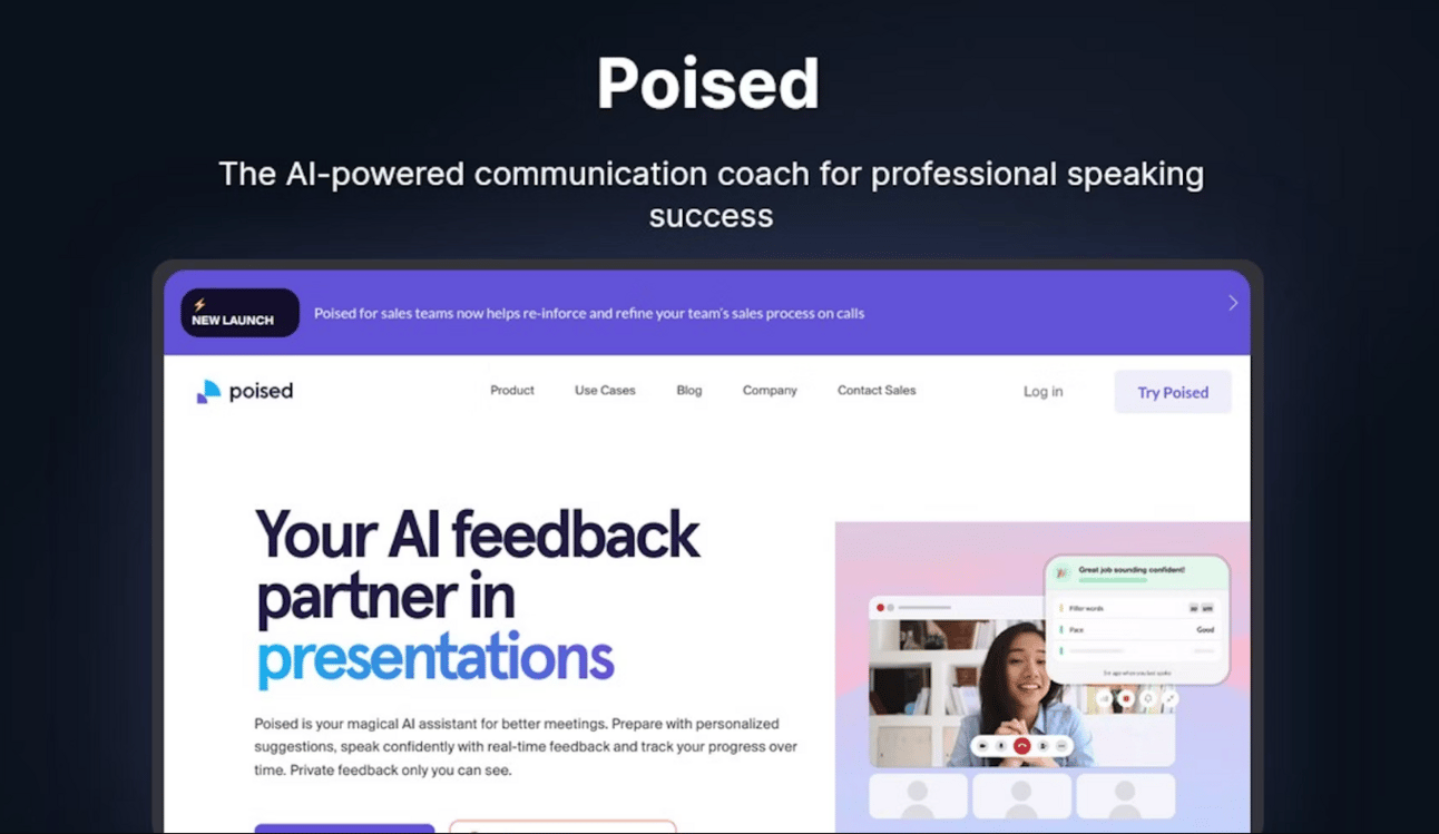 Poised is an AI-powered communication coach for public speakers. It offers feedback and coaching to help you communicate more clearly. Poise was recently acquired by Deepgram, an app we profiled in an earlier newsletter.