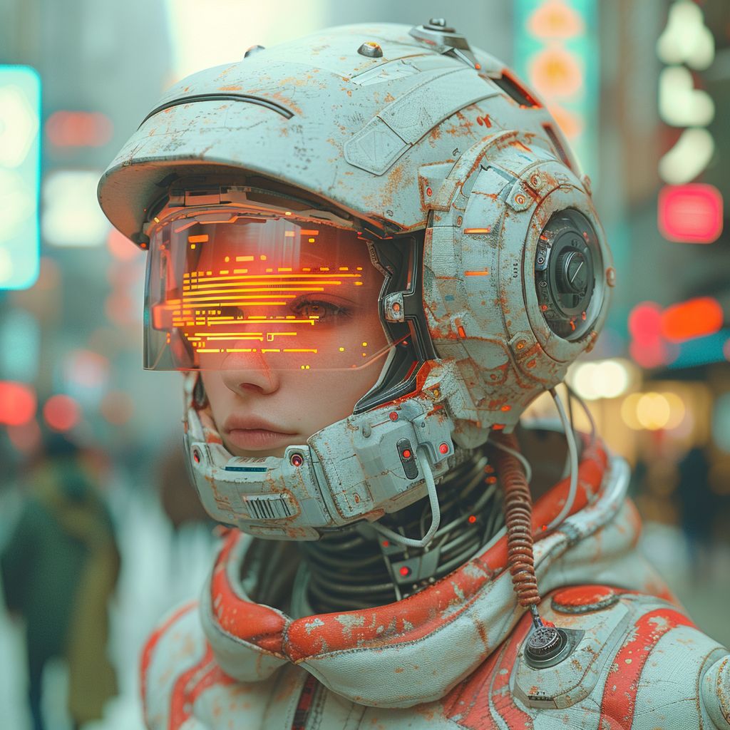 prompt: a person wearing future technology on their headGet starting with Generative AI