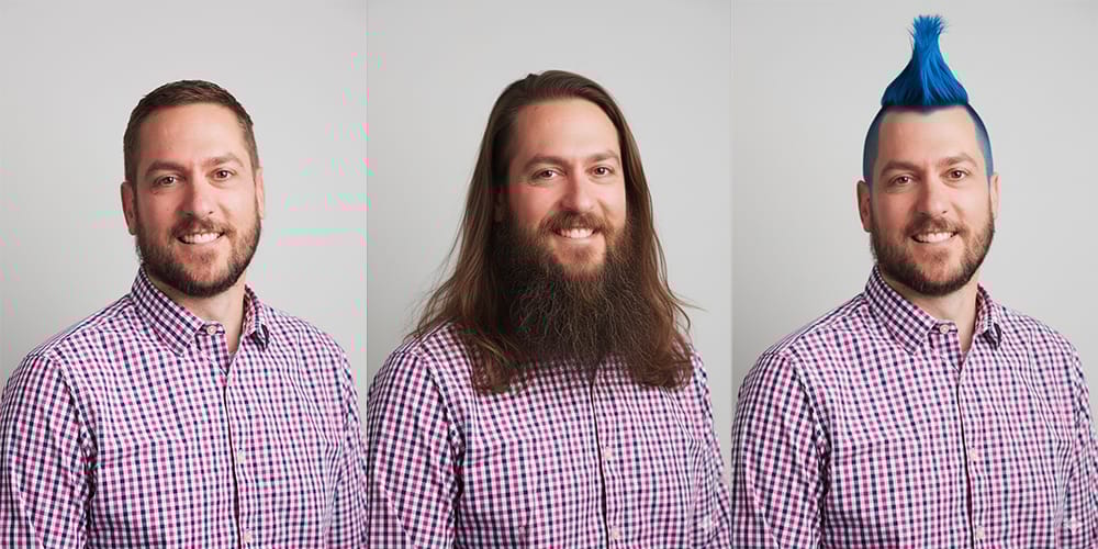 Prompt: Give me a long beard and long hair / Give me a blue mohawkWhat we found